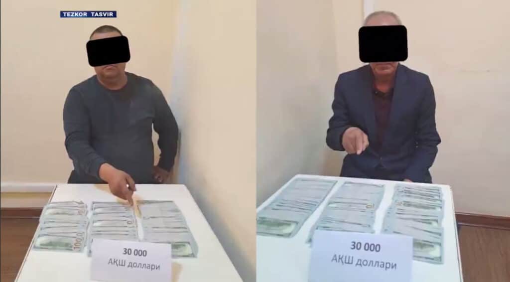 Aniqlanishicha, Qarshi shahrida faoliyat yurituvchi dehqon bozori raisi va nazoratchisi o‘zaro til biriktirib, bozorda yangi qurilgan 110 m² maydondagi savdo do‘konini tadbirkorga rasmiylashtirib berish evaziga $80 ming talab qilgan. Ular oldindan $30 ming olayotgan vaqtida ashyoviy dalillar bilan qo‘lga olingan.