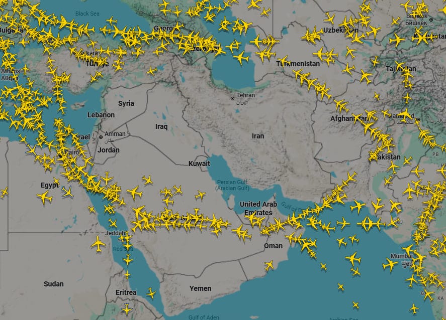 Hukumatlar yuz minglab fuqaroning Yaqin Sharqdan evakuatsiyasini tashkil qilishga harakat qilmoqda. Mojarolar oqibatida mintaqadagi ko‘pchilik davlatlarning havo hududi yopilgan. Dubay xalqaro aeroportida uchishlar chorshanba kuni ikki baravarga oshgani kuzatildi, ammo havo harakati hali normal darajaga qaytmagan. Havo yo‘llari orqali yuk tashish ham buzilgan. Bu esa tez buziluvchi mahsulotlar va samolyot qismlarini yetkazishda muammolar tug‘dirmoqda.