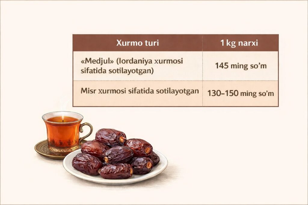 Yaqin Sharqdagi harbiy mojarolar boshlangach, ekspertlar oziq‑ovqat narxlari oshishini bildirgan. Shunga qaramay, O‘zbekistonda Eron xurmosi narxi deyarli o‘zgarmagan.
