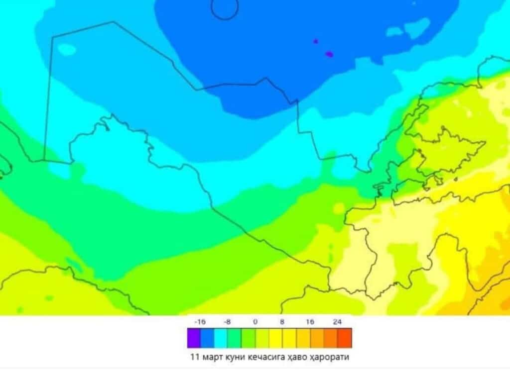 10 – 12-mart kunlari havo harorati respublikaning shimolida kechalari 7-10 daraja sovuqqacha pasayishi, kunduz kunlari esa 0-3 daraja sovuqqacha tushishi mumkin. Qolgan hududlarda 11 – 12-martda kechalari 0-3 daraja sovuqqacha, kunduz kunlari esa 2-5 daraja iliqqacha pasayadi.