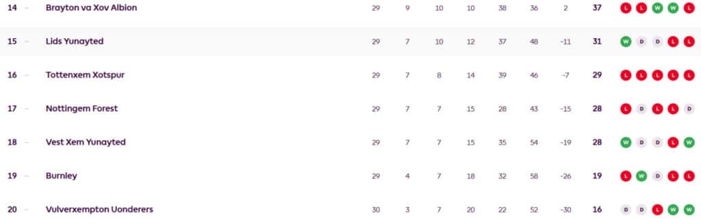 Londonliklar ayni paytda turnir jadvalida 16-o‘rinni egallab turibdi. Xavfli hududdan ularni atigi bir ochko ajratib turibdi. Klub joriy yilda birorta ham o‘yinda g‘alaba qozona olmadi. Yangi bosh murabbiy Igor Tudor qo‘l ostida o‘tkazilgan uchta o‘yinda ham mag‘lubiyat qayd etildi.