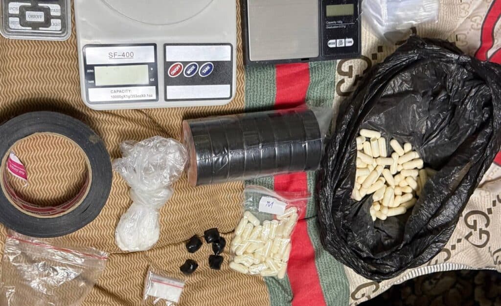 Uning xonadoni ko‘zdan kechirilganda 114 dona kapsulada taxminan 80 gramm «alfa-PVP», 37 dona o‘ram, 2 gramm «marixuana», 30 gramm boshqa turdagi sintetik narkotik modda, 4 dona elektron tarozi hamda izolenta va zip paketlar aniqlanib, daliliy ashyo sifatida olindi.
