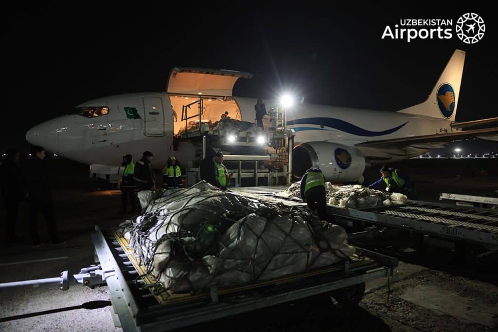 O‘zbekiston hamda Pokiston o‘rtasida oziq-ovqat mahsulotlarini yetkazib berishga qaratilgan ilk charter yuk parvozi amalga oshirildi. Bu haqda Uzbekistan Airports xabar berdi.