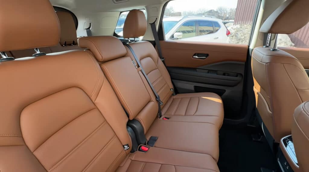 Ichkarida Pathfinder ko‘proq qulaylikka ishlaydi. Salon teri bilan qoplangan, old o‘rindiqlar elektr sozlanadi, iqlim tizimi uchun alohida fizik tugmalar saqlab qolingan. Bu esa ko‘plab yangi modellardan farqli ravishda foydalanishni osonlashtiradi.