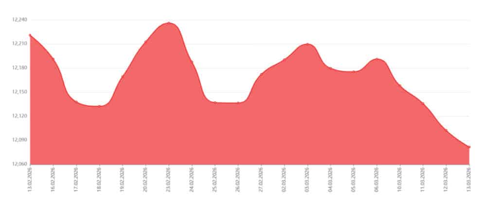 Xususan, 11-mart kuni 33,12 so‘mga tushib, 12 158,13 so‘mni, 12-mart kuni 22,37 so‘mga tushib, 12 135,76 so‘mni va 13-mart kuni esa yana 33,37 so‘mga tushib, 12 102,39 so‘mni qayd etdi. Jami hisobda dollar narxi hafta davomida 88,86 so‘mga tushdi.