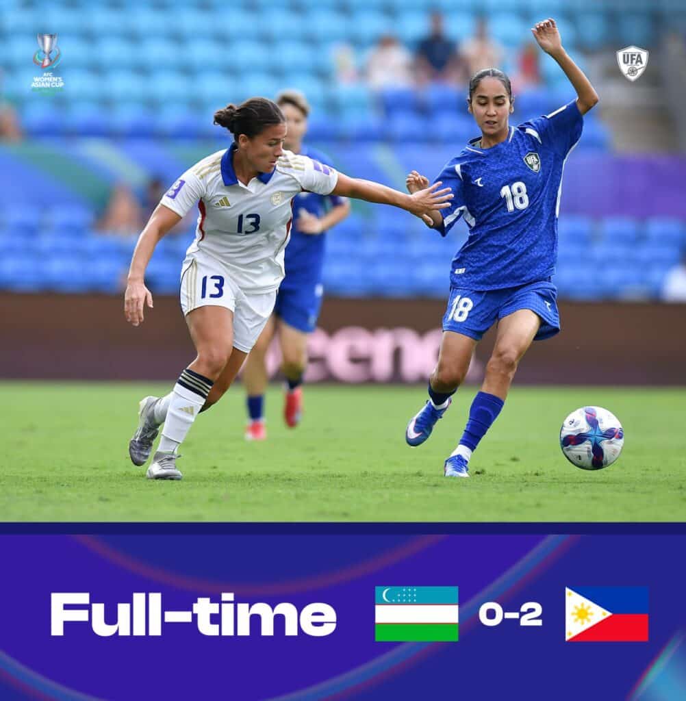 19-mart kuni Avstraliyadagi «Gold Coast» stadionida o‘tgan 2026-yilgi ayollar Osiyo kubogi pley-off bahsida O‘zbekiston terma jamoasi Filippinga 0:2 hisobida yutqazdi. Bu mag‘lubiyat sababli jamoa 2027-yilgi Jahon chempionatiga to‘g‘ridan to‘g‘ri yo‘llanma ololmadi.