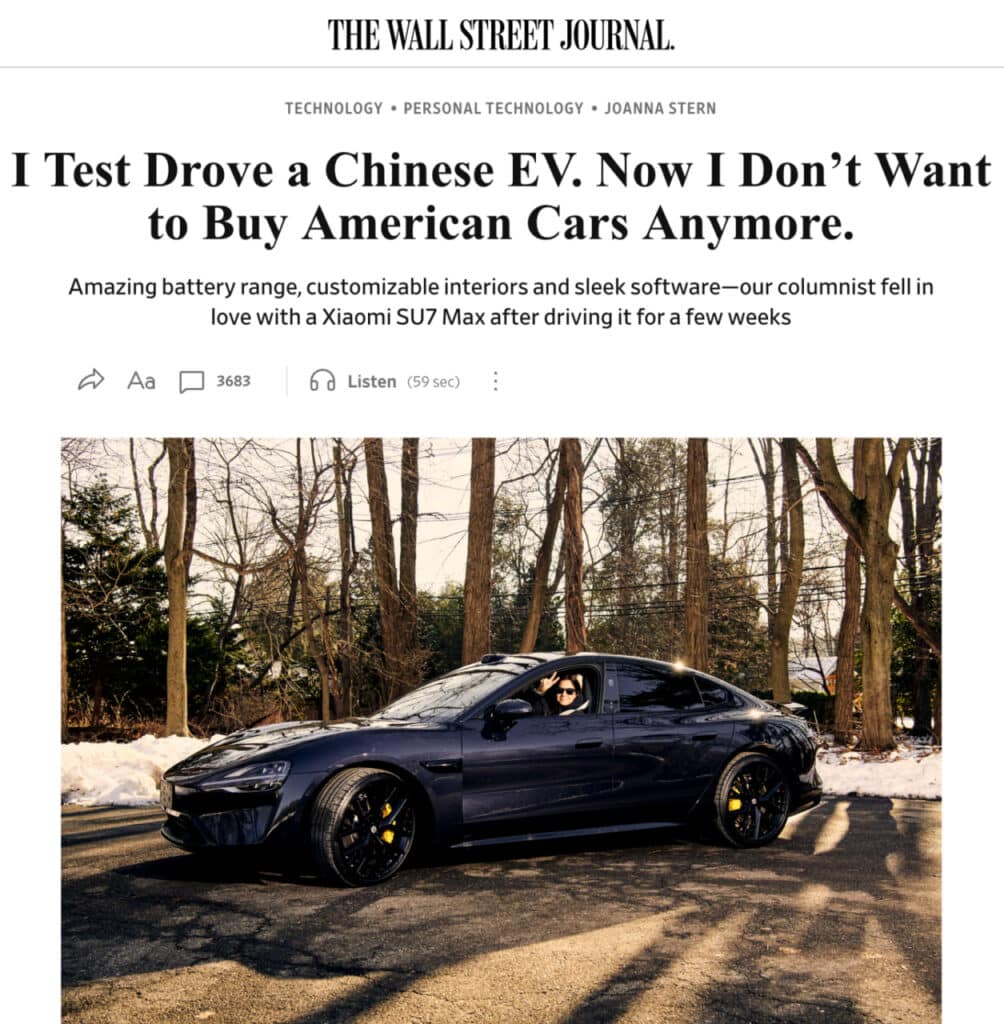 U hatto Wall Street Journal’dagi «Apple ishlab chiqmagan Apple Car shu bo‘lishi mumkin» degan fikrni qisman qo‘llab-quvvatlagan. Xiaomi smartfon bozorida ko‘proq «arzon Apple» sifatida ko‘rilsa, avtomobil bozorida aksincha, juda puxta va premium hissi beruvchi mahsulot yaratgani ta’kidlangan.