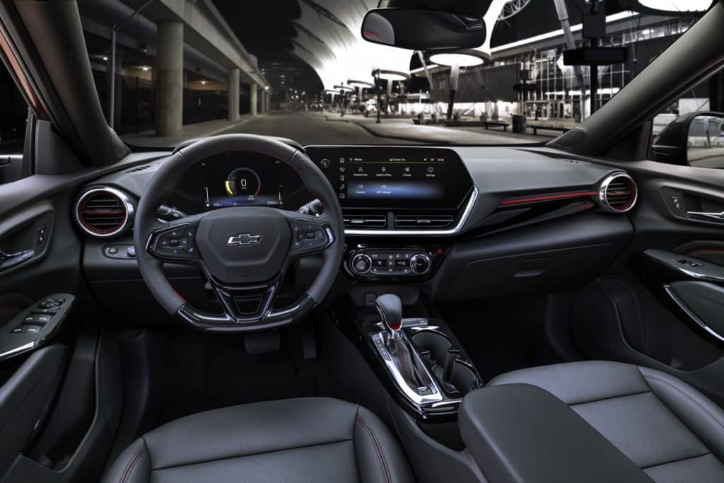 Salon qismida katta o‘zgarishlar kutilmayapti. Ammo kichik yangilanishlar bo‘lishi mumkin. Multimedia tizimi va ichki bezak materiallarida yaxshilanish ehtimoli bor. Tracker odatdagidek qulay va amaliy interyerga ega bo‘lib qoladi.