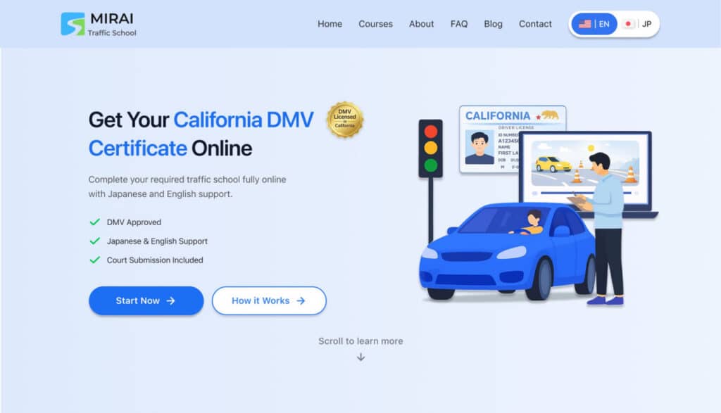 Bugungi kunda Mirai Traffic School yapon tiliga moslashtirilgan onlayn trafik maktabi sifatida rivojlanmoqda. Platformada ingliz va yapon tillarida tushuntirishlar, real hayotiy vaziyatlarga asoslangan darslar hamda sun’iy intellekt texnologiyalaridan foydalanilgan yordamchi tizimlar mavjud.