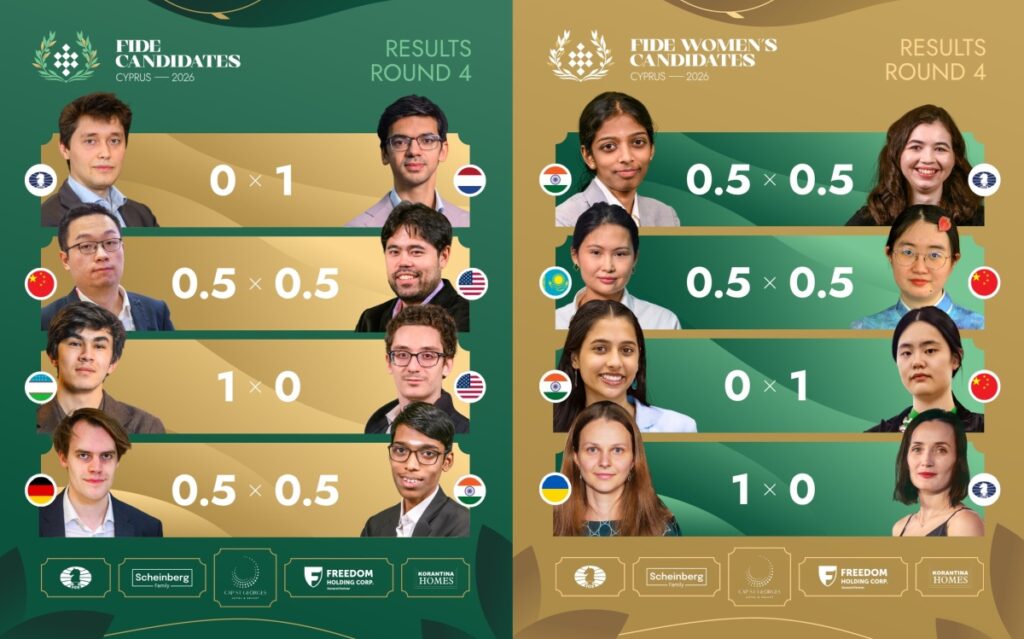 2026-yil 1-aprel kuni bo‘lib o‘tgan FIDE nomzodlar turnirining 4-turida Javohir Sindarov amerikalik Fabiano Karuanani mag‘lub etib, turnir g‘olibligi sari muhim qadam tashladi.