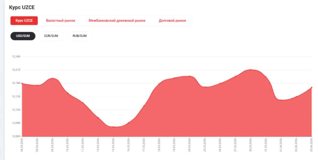 Biroq aprel boshidan boshlab kurs pasayishni boshladi. 1-aprel kuni dollar 16,50 so‘mga arzonlab, 12 194,21 so‘mni tashkil etdi. 2-aprel kuni pasayish yanada keskinlashdi va valyuta 52,11 so‘mga tushib, 12 142,10 so‘mgacha kamaydi. 3-apreldan boshlab esa dollar yana tiklana boshladi. Shu kuni AQSh valyutasi 7,74 so‘mga ko‘tarilib, 12 149,84 so‘mni tashkil etdi.
