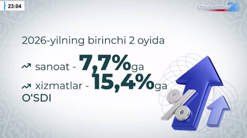 Joriy yilning dastlabki ikki oyida O‘zbekistonda sanoat ishlab chiqarishi 7,7 foizga, xizmatlar sohasi esa 15,4 foizga oshdi. Shu davrda $3,5 mlrd eksport amalga oshirildi. Mamlakat iqtisodiyotiga $8,3 mlrd xorijiy investitsiya jalb qilindi.