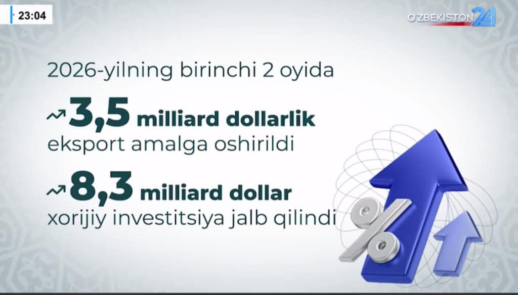 Joriy yilning dastlabki ikki oyida O‘zbekistonda sanoat ishlab chiqarishi 7,7 foizga, xizmatlar sohasi esa 15,4 foizga oshdi. Shu davrda $3,5 mlrd eksport amalga oshirildi. Mamlakat iqtisodiyotiga $8,3 mlrd xorijiy investitsiya jalb qilindi.