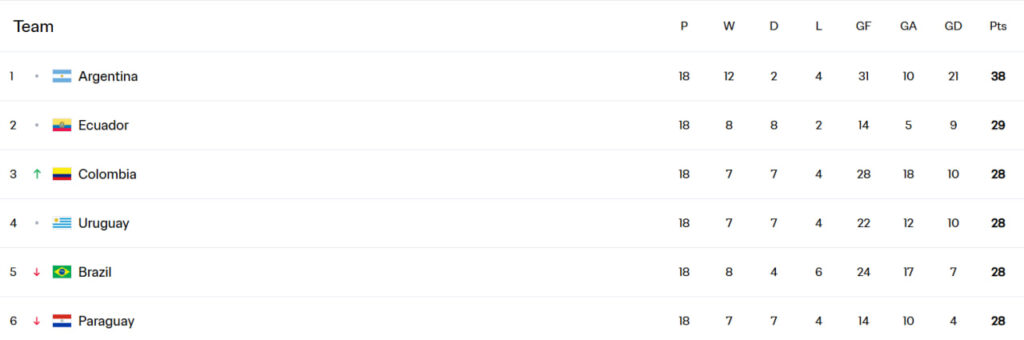 Kolumbiya Janubiy Amerika saralash bosqichida Argentina va Urugvay bilan munosib raqobatlashib, turnir jadvalida 3-o‘rinni band etdi. O‘tkazilgan 18 o‘yinda 7 g‘alaba, 7 durang va faqatgina 4 mag‘lubiyat bilan 28 ochko to‘pladi. Jamoa tarkibida tajribali Hames Rodriges va Richard Rios, Jon Duran kabi yosh iqtidorlar o‘rtasida mukammal muvozanat shakllangan.