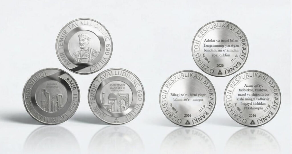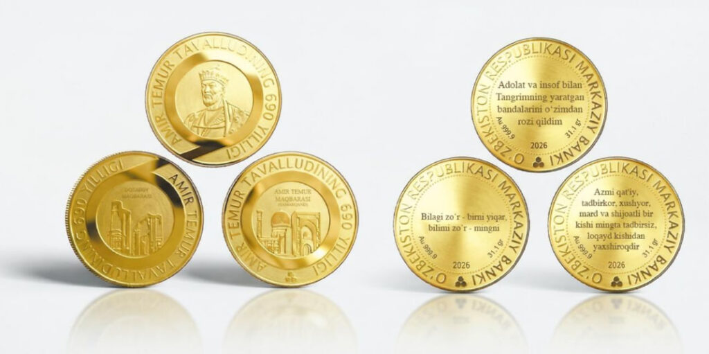 O‘zbekiston Respublikasi Markaziy banki Sohibqiron Amir Temur tavalludining 690 yilligi munosabati bilan esdalik tangalari va suvenir to‘plamlari sotuvini yo‘lga qo‘ydi.