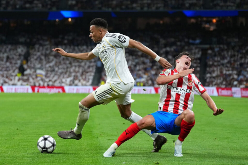 Uchrashuvning birinchi bo‘limi nisbatan sust o‘tdi. «Real» to‘p nazoratini qo‘lga oldi, biroq keskin vaziyatlar kam bo‘ldi. Kilian Mbappe va Vinisius Junior zarbalari darvozabon uchun jiddiy xavf tug‘dirmadi. «Jirona» esa himoyada tartibli o‘ynab, mezbonlarga ochiq imkoniyat bermadi. Natijada tanaffusga tomonlar golsiz yo‘l oldi.
