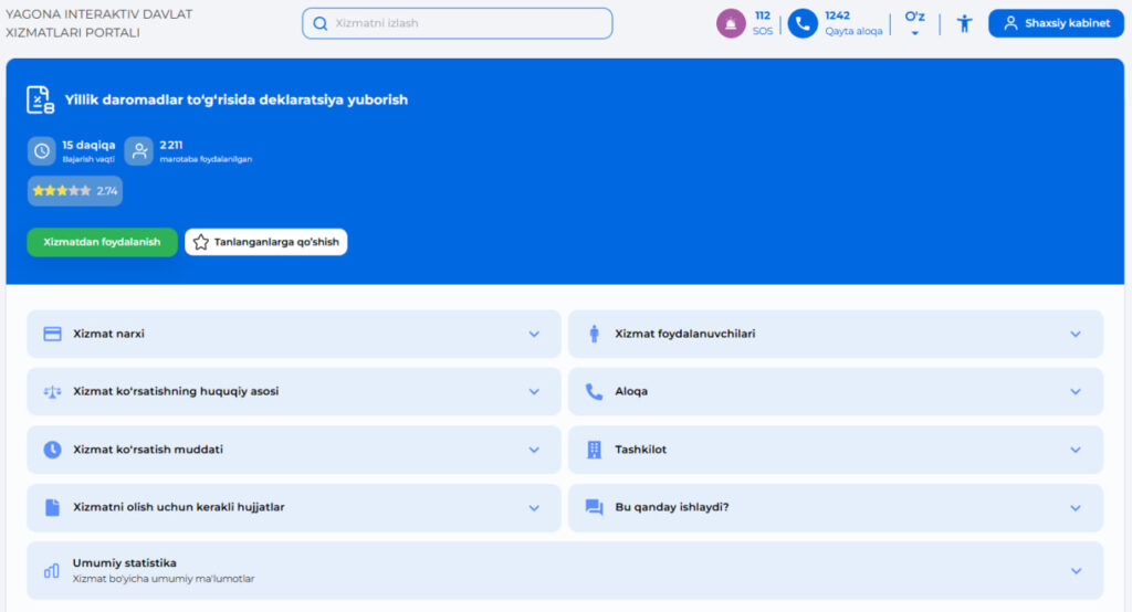 Avvalo, portalga kirib, yillik daromad deklaratsiyasini to‘ldirishingiz kerak bo‘ladi. Buning uchun: