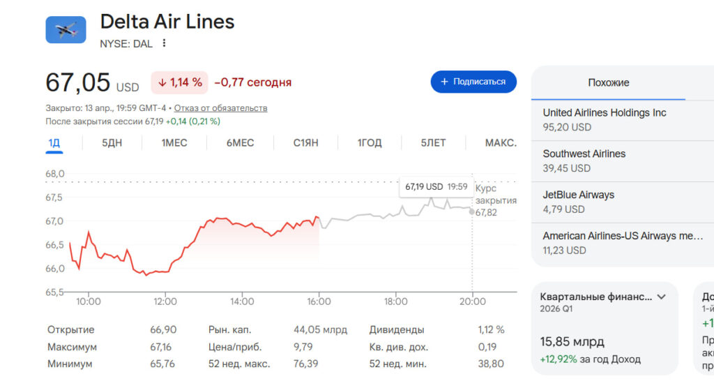 Shu bilan birga, Delta aksiyalari yil boshidan buyon pasayishda davom etmoqda. 13-aprel kuni ular 2,3 foizga tushdi, yil boshidan esa umumiy pasayish 4,6 foizni tashkil qildi. Taqqoslash uchun, S&P 500 indeksi shu davrda atigi 0,3 foizga kamaygan.