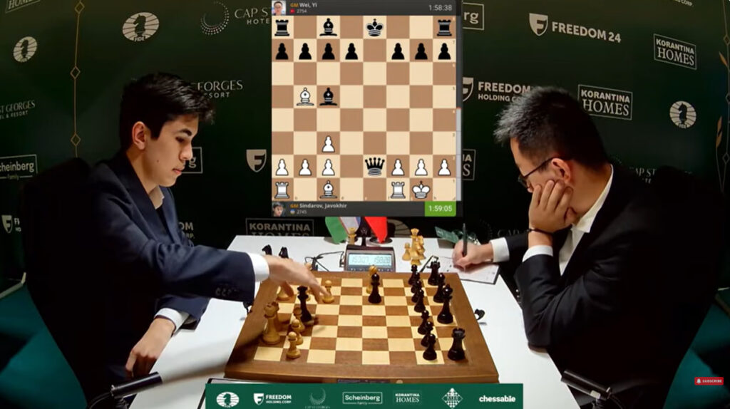 Turnirning 14-turida Sindarov Xitoy vakili Vey Yi bilan oq donalarda tezkor durang qayd etdi. 32-yurishdan so‘ng to‘xtatilgan ushbu partiya natijasiga ko‘ra, u turnirni oldindan muddatidan avval g‘olib sifatida yakunlab, jahon chempioni unvoni uchun o‘tkaziladigan matchda ishtirok etish huquqini qo‘lga kiritdi.