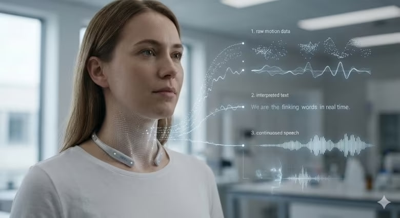 Bo‘yin mikroharakatlari orqali ovoz sintez qiluvchi texnologiya ishlab chiqildi / Foto: Nano Banana