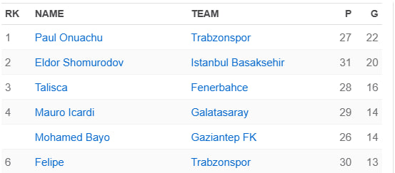 Ayni paytda uning hisobida 20 ta gol mavjud. To‘purarlar ro‘yxatida «Trabzonspor» hujumchisi Pol Onuachu 22 ta gol bilan peshqadamlikni saqlab turibdi.