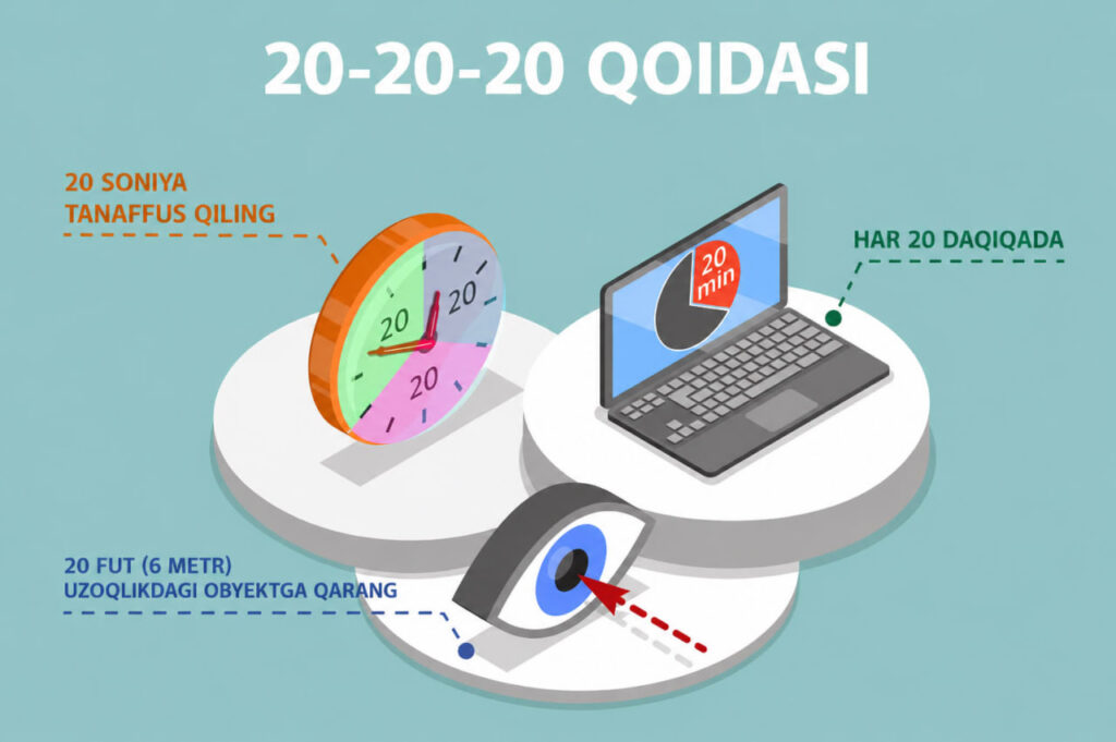 20-20-20 qoidasi: eng oddiy va samarali himoya usuli